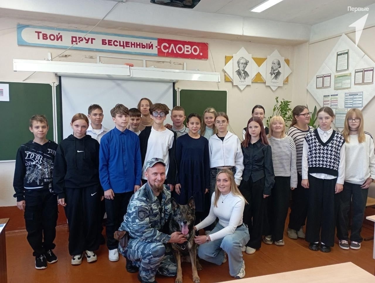 В школе села Айкино состоялась незабываемая «Классная встреча» с полицейскими-кинологами и их верной помощницей.