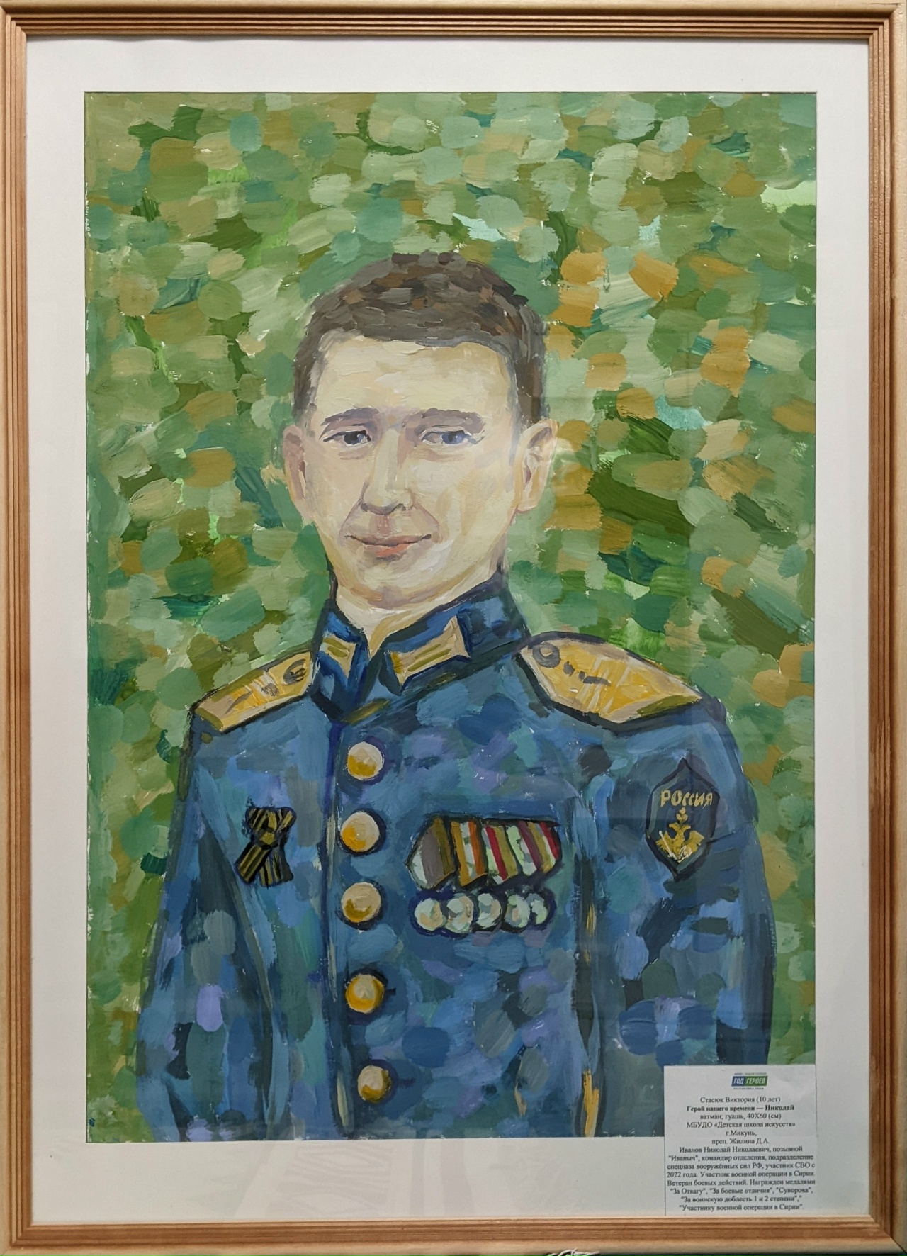 Под руководством преподавателя Дарьи Жилиной Виктория Стасюк изобразила своего крестного Николая Николаевича Иванова, участника специальной военной операции с 2022 года.