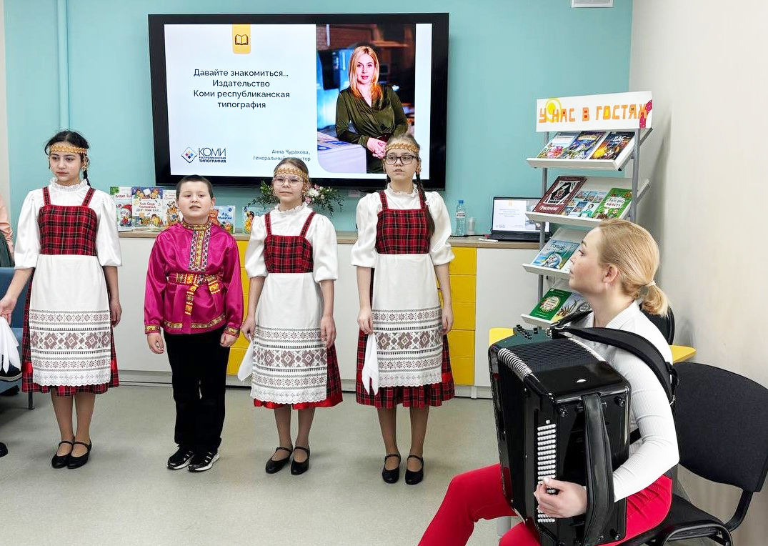 Праздник начался с музыкального подарка от вокального коллектива «Нотки» Дома культуры райцентра – ребята исполнили песню на коми языке о родной земле. Тёплая мелодия баяна и слова песни сразу создали особую атмосферу в Центральной районной библиотеке имени Питирима Сорокина и объединили всех присутствующих.