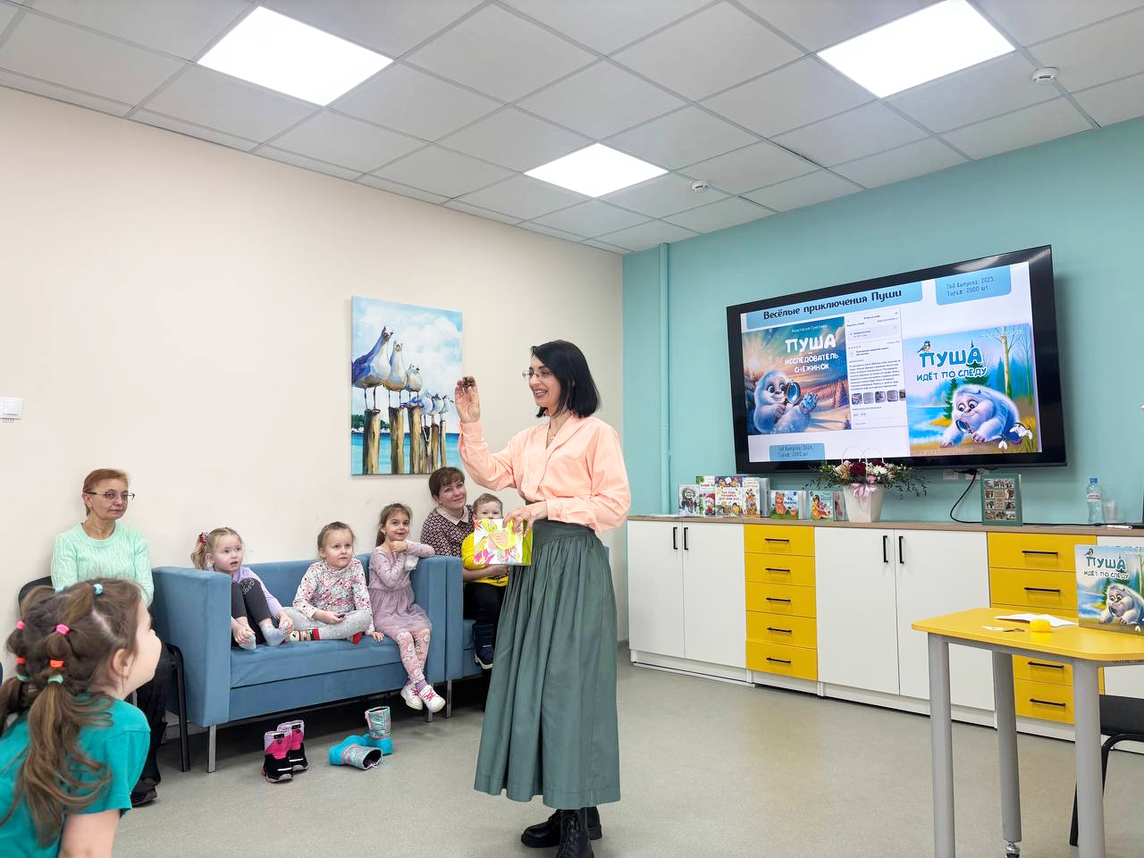 Главная гостья мероприятия, Анастасия Сукгоева, поделилась историей своего творческого пути и представила новые книги. Внимание детей сразу привлекла «Пуши: исследователь снежинок». Юные читатели с восторгом задавали вопросы о любимом герое, а самым волнующим стал вопрос о продолжении: ребята хотели узнать, отправится ли Пуша исследовать лето.