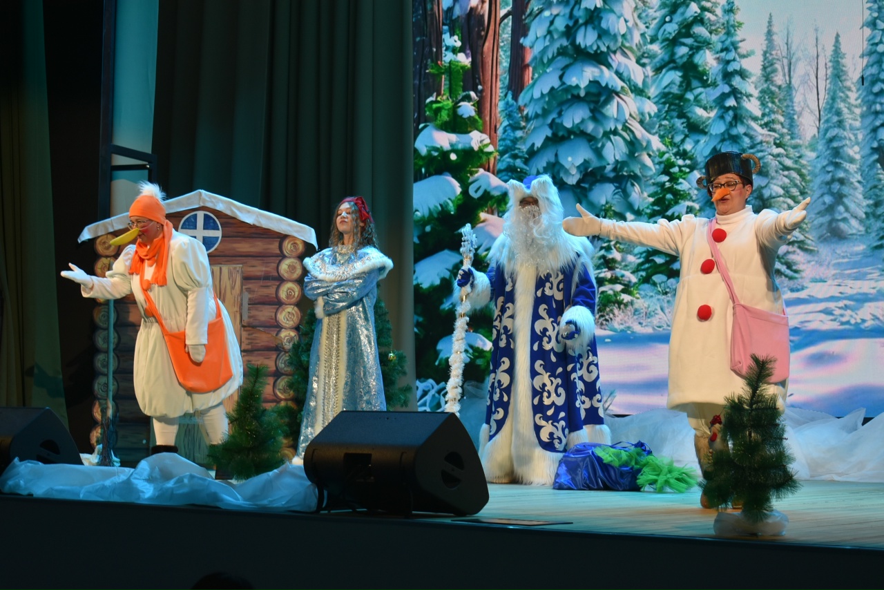 В центре внимания оказалось театрализованное представление, в котором ожили сказочные персонажи и развернулись неожиданные сюжетные линии. Артисты Дома культуры подготовили для зрителей захватывающее приключение о том, как внучка Бабы Яги, озорная Ёжка, захотела стать Снегурочкой. В этой волшебной истории дети повстречали Бабу Ягу, Лешего, Кикимору, Ёжку, Молодого Нового года, Деда Мороза и Снегурочку.