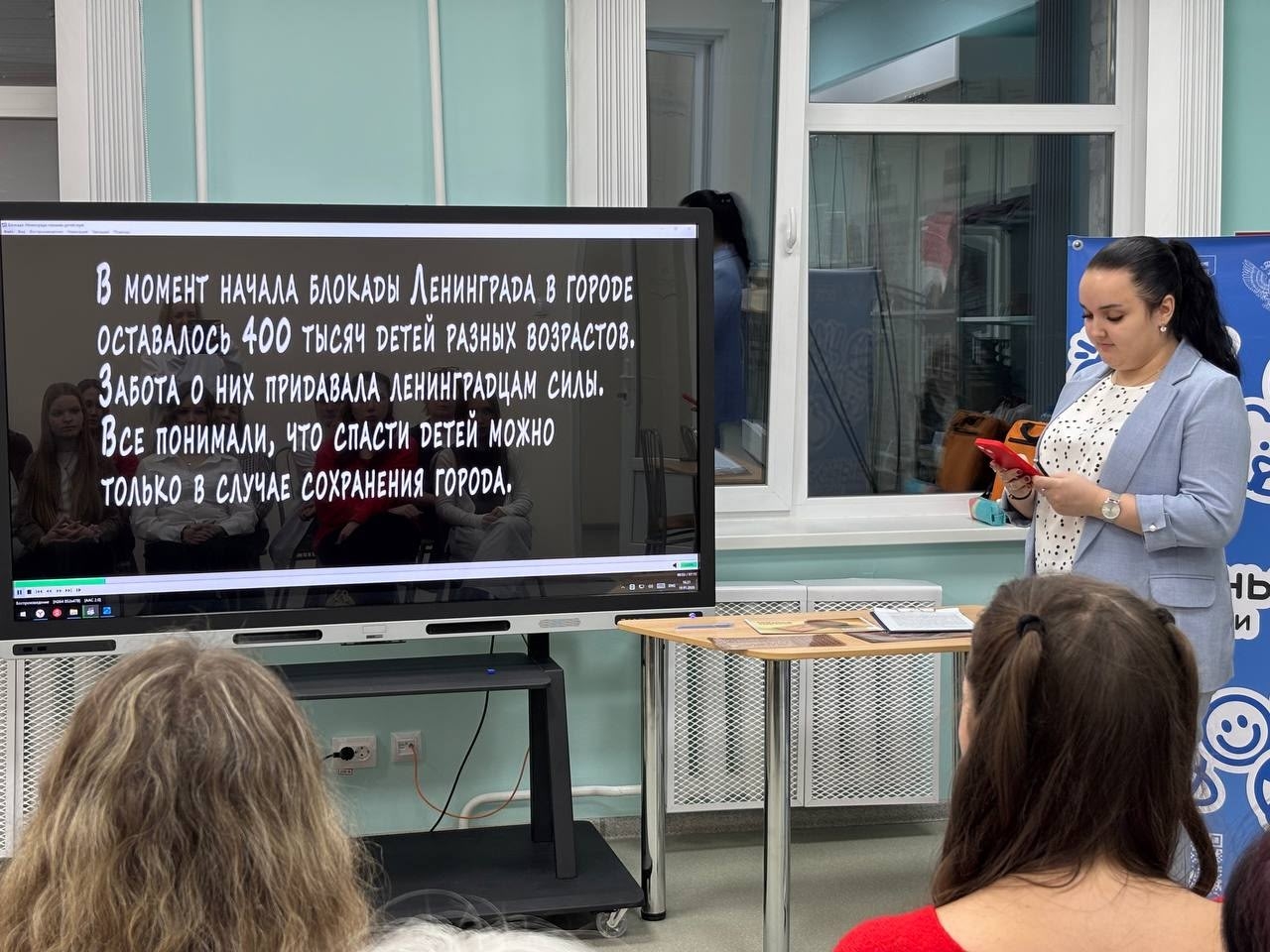 На мероприятии ребятам и педагогам показали видеосюжет «Блокада глазами детей». В нём жители Ленинграда, которым на момент блокады было не больше 11 лет, делятся своими воспоминаниями.
