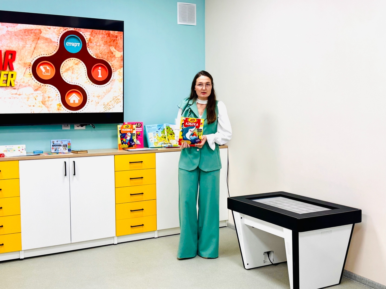 – Дети обожают яркие цвета и интерактивность, – продолжила она, ведя гостей по «Территории детства». – Новое пространство с книгами дополненной реальностью и мультимедийным оборудованием поможет нашим читателям активно развиваться.